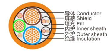 鋁合金芯硬乙丙橡膠或類似合成橡膠絕緣銅絲屏蔽聚氨酯彈性體內護及護套電動汽車充電用電纜